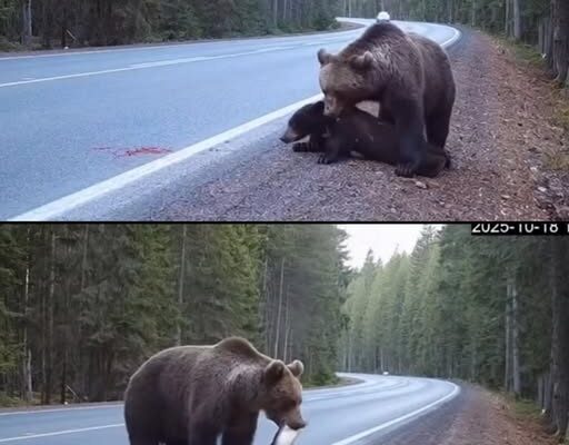 Her instinct kicked in. She refused to leave her cub behind. With tears in her eyes — though perhaps unseen to the human eye — the mother bear did what any mother would: she fought. She carried her cub in her mouth, a small creature that once snuggled at her side, now limp and broken. Her cries filled the air, desperate and mournful, as if pleading for someone, anyone, to help.