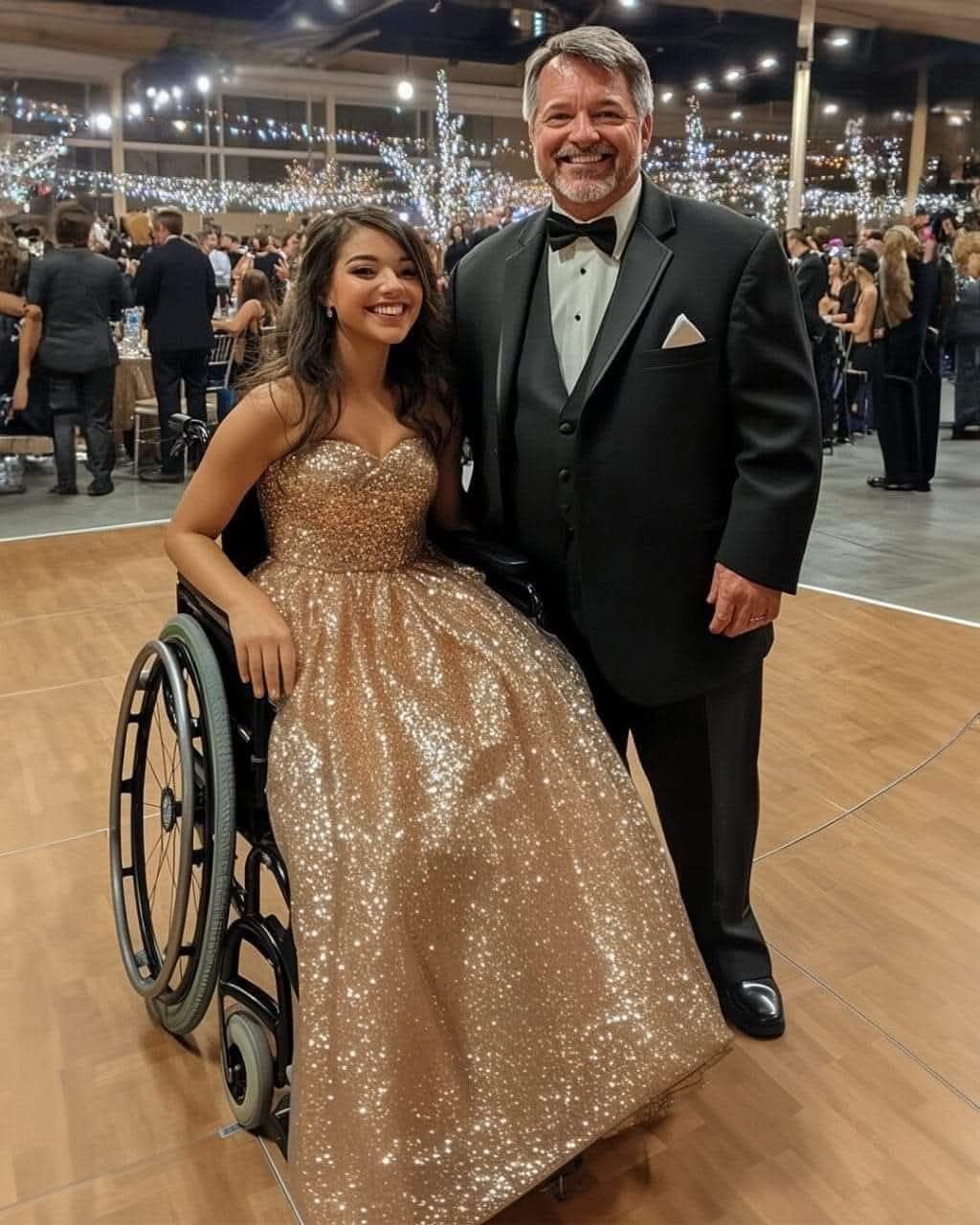 **Dad Takes Daughter in Wheelchair to Prom – The Surprise That Came Next**Prom night is a special occasion for high school students—a night filled with anticipation, joy, and a chance to create unforgettable memories. For one father and daughter duo, this prom night would turn out to be even more extraordinary than they had imagined.Sarah, a high school senior, had been looking forward to her prom night for months. But due to circumstances beyond her control, she found herself without a date just weeks before the event. That’s when her father, John, stepped in. A man of kind heart and unwavering support, he offered to take Sarah to prom, ensuring that she wouldn’t miss out on the special occasion.